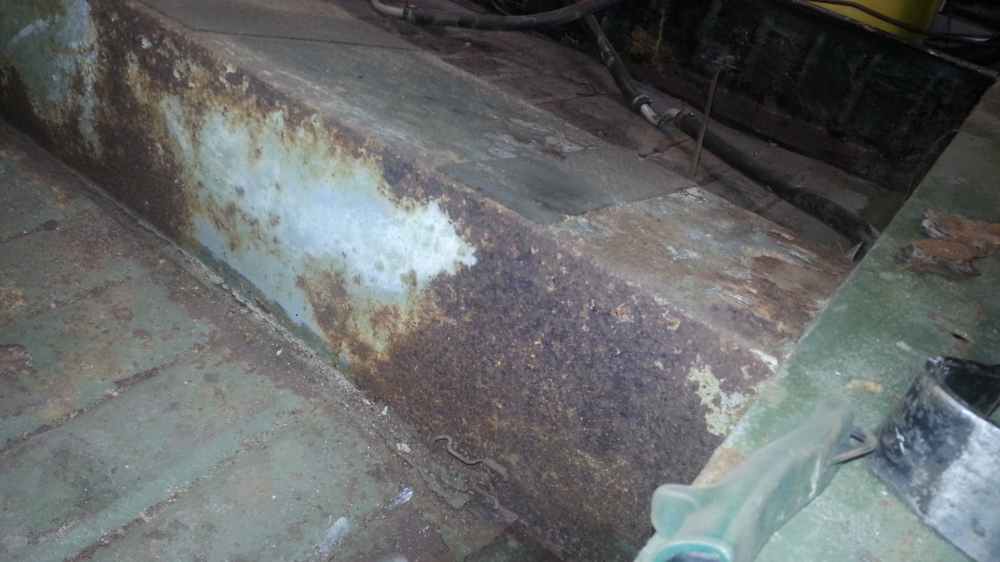 Sitten, innostuin puhalteleen irtopaskoja paineilmalla ja samalla huomasin miten helposti sillä massatkin irtoilee. Tästä taas seuraa se, että massan alta paljastuu ehjää pintaa, mutta se on pintaruosteessa. Mitä olette tehneet vastaavassa tilanteessa? Paikat on täysin ehjiä, mutta ruosteessa. Pintaruoste pois miten saa teräsharjalla ja massa päälle vai mikä on paras konsti.... Kemiallinen poisto, soodapuhallus, ny o sormi suussa, kun en ole varma parhaasta tavasta päästä pintaruosteesta jne. Tarkoitus on tehdä homma kunnolla, se on ollut meininki tämän kanssa alusta asti. Hioin pintaruosteita kans vähän pohjakaukalon seinistä.