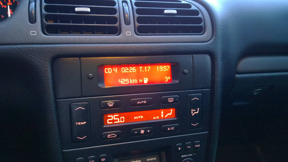 Coupe-Pösöjen tyyppivika on keskikonsolin multi-function displaystä katoavat pikselirivit, varsinkin tästä navigaattorilla varustetusta huippumallista jossa näyttö on isompi, Siemensin tekemä. Tämmöistä sotkua se kuva näin vanhemmiten on: