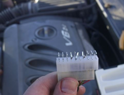 , I decided to make a bridge to the Unichip connector. Bridge will restore the original functions of the Motronic ecu, bypassing totally the Unichip which can be removed then. As we are in Estonia, it was not hard to find electronics component shop open at 8PM easter saturday. So I went ahead and bought suitable connector (standard PC power block connector) and made prototype of bridge: Liitteet:
