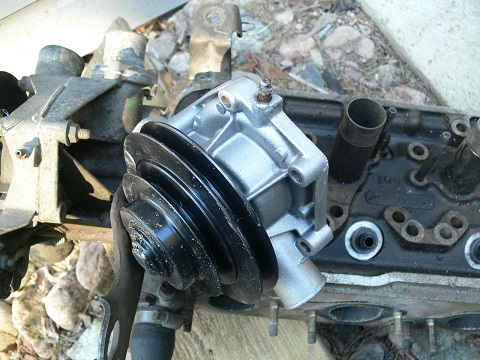 Tässä perhepotretissa 2400 gti:n ja 2200:n pumput. Hihnoissa ero ja hihnan kiristysmekanismi erilainen. Jos laitat 2400:n pumpun, täytyy vaihtaa myös vetopyörä nokka-akselin päähän ja tietty kiristin. Edellyttäen siinä on tuo hammashihna veto. Saman mallin pumppua on kahdella kiilahihnalla kaikissa 2,5 koneissa, sekä bensa että diesel ja voi olla, että 2,4 oli myös kiilahihna versiota. Tuo kansi on muistaakseni -70 luvun puolelta.