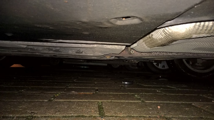 Putosi avain kädestä autosta noustessa. Ja ihan keskelle autoa päätyi. Ensimmäisenä tuli mieleen "nostanpa sitä (autoa, hydejouset nääs  ) vähän, että mahdun paremmin ottamaan sen". Sitten tajusin, minkä tarvitsen, että saan auton nousemaan. Oli märkää ja satoi vettä. Onneksi kanniskelen takakontissa yleensä kaikkea tarpeetonta, kuten tänäänkin. Mukana oli 2,5 X 3 m kevytpeite. Pressun päällä maaten tyttö ylettyi potkaisemaan avaimen parempaan paikkaan poimimista varten. Vaan, mikä on toi kuvassa näkyvän putken funktio tässä maailmankaikkeudessa?