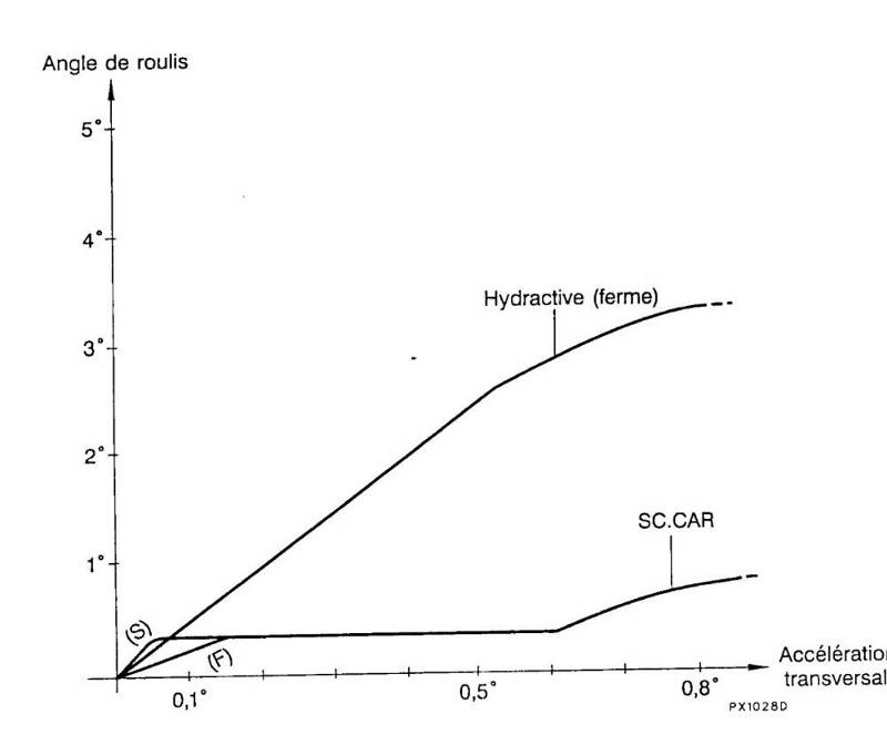 Eli tuon perusteella Activa kallistuisi maksimissaan ehkä 2...3 astetta vaikka activa-sylinterit korvaisi terästangoilla (1...1,5 G sivuttaiskiihtyvyydellä), eli kun ottaa huomioon että sylintereiden toimiessa kiihtyvyydestä voi vähentää tuon 0,6 G ja kallistukseen lisätä vähän (0,3...0,5°) ja huomioida vielä progressiivisuuden vaikutus, niin noin yksi aste on varmaan lähellä. Perus (Hydractiven) kallistuskulma ei siis olisi kuin 4...5 astetta yhden G kiihtyvyydellä (kuvaajan lopun progressio on piirretty aika hurjaksi, jos jatkaisi samanlaisena olisi platoo jo 3...4 välillä, mutten usko täysin kuvaajan tarkkuuteen) .