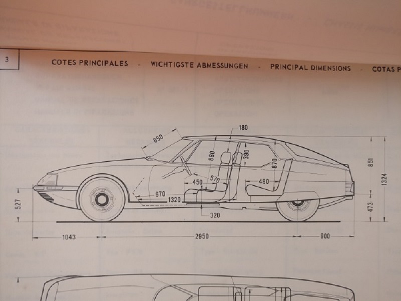 Korjaamokirja CITROEN SM (SB Serie SB) 1971 N 589/7 antaa kuvissa näkyviä mittoja.