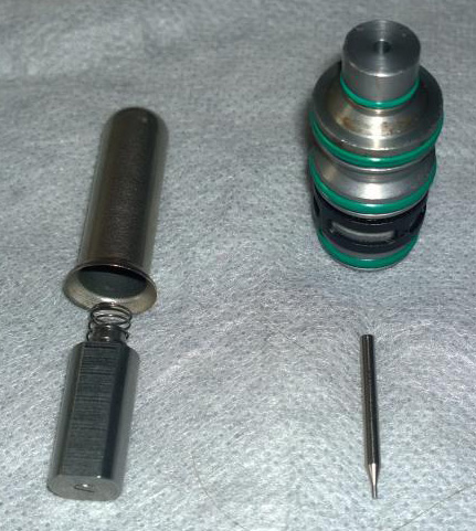 Venttiilin siivilöin varustettu sisäelin jäi sisään. Sen tosin sai pyöreäkärkisillä pihdeillä noukittua ulos ilman jälkien jättämistä metalliosiin tahi vihreiden O-renkaiden rikkomista. Tässä vaiheessa piti pitää kieli keskellä suuta jottei n. 2 x 20 mm neulaventtiili häipyisi.