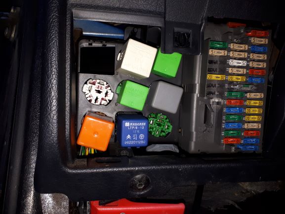 Mihin on sijoitettu kyseisen kulkineen vilkkurele? Ilmeisesti ei mikään näistä sulakerasian vierellä olevista releistä? Sulakerasian toisella puolella on vielä yksi samanlainen sininen rele kuin kuvassa. Muita releitä kojelaudan alta en löytänyt. Mistä siis läytyy vilkkurele vai voiko vilkuissa olla muuta syytä toimimattomuutteen?