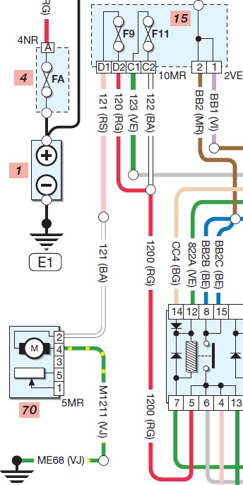vtsbx kirjoitti: Niin tuolta releeltä lähtee 6,4 ja 13 liittimillä sama sähkö toisaalle. Mutta siis mittaamalla tuohon 5 liittimeen on sähkö tullut jossain kohtaa? Mielestäni noilta nastoilta 4, 5, 6 ja 13 ei ole missään vaiheessa mitattu jännitettä rele kiinnitettynä. Ilmeisesti ei saanut mittaria ujutettua väliin. Sitä en tiedä, miksi ei ole onnistunut mittaamaan sulakerasian 10MR-liittimen nastoilta D2 ja C2, kun se jo asiaa valottaisi. Sitten olisi vielä nuo edellä mainitut vaihtoehdot ja kaasuläppäkotelon lämmityksen liittimen 1-nastakin kiinnostavana mittauskohteena.