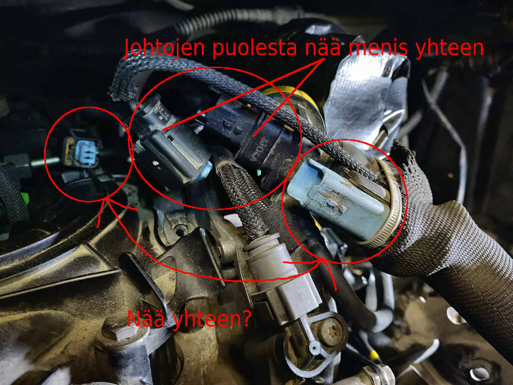 Tyhmä kysymys, mutta jos jollakulla on DS5 samalla koneella tai edes vaan hdi163 kone jossain, niin voisko tarkistaa parin liittimen kytkentä? Yleensähän oikeat liittimet löytyy aika helposti ja epäselvissä liitinkimpuissa tulee otettua kuvat tai jopa teipattua tieto, mihin liittimet menee, mutta huohotinputken nappasin irti ilman, että olisin kiinnittänyt juurikaan huomiota liittimiin. Yläpäässä on yksi johto, joka tulee huohotinputken päällysvaipan alta, ja joka johtojen muodon perusteella menisi putken päässä olevaan kiinteään liitinrasiaan (musta). Huohottimen päässä on myös toinen sininen liitinrasia, jolle sopiva vastinpari näyttäisi olevan moottorin taaimmaisesta johtosarjasta peräisin oleva sininen liitin johdon päässä. Toisaalta kummatkin johdon päässä olevat liittimet ovat mustia, joissa on samanlainen sininen sisäosa... Olen tästä aika varma, että menee tämän kuvan mukaan, mutta voisko joku tarkistaa? Liitteet: