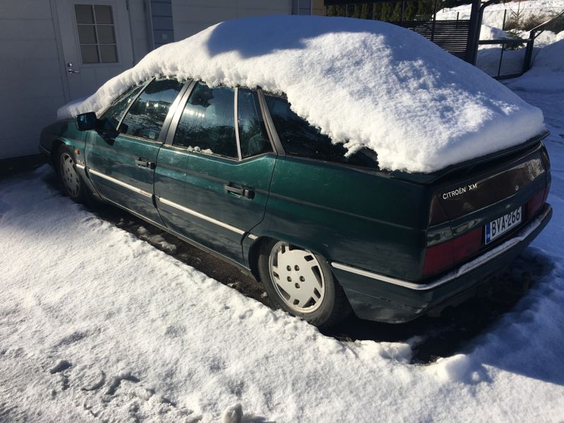 Niinhän siinä sit kävi, että kun aikansa kyseli sopivan edullista Xm:ää niin sellainen löytyi vahingossa. Juuri syksyllä totesin, että en osta xm:ää, koska resuista pyydetään ehjän hinta ja ehjiä ei myydä. Nyt löytyi huolenpitoa kaipaava yksilö rikkinäisen auton hinnalla. Periaatteessa vieläpä juuri sellainen kuin halusinkin, mutta tää on vihreä, entinen oli musta ja siis komeamman näköinen Autoa on enemmän ja vähemmän purettu, koska sitä valmisteltiin kierrätykseen, mutta "melkein kaikki osat pitäisi löytyä". Suurin (ja ainoa?) vika tässä autossa on, että öljyt haluaa mennä jäähdytysjärjestelmään. Kaippa tuohon ratkaisu löytyy, kun vaan 16 valven ja bussin jälkeen ehtis tähän paneutumaan ja saa moottorin levälleen. Yksi osapuute on tiedossa ja ois mukava löytää jostain, ratin asentotunnistin, vai onko se kääntönopeus tunnistin. Kuitenkin siitä ratin juuresta se, mikä haistelee jousitukselle ratin liikkeitä.