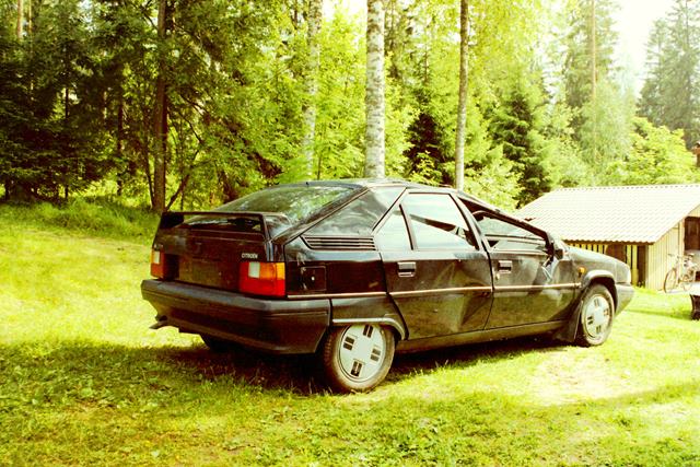 Minkähän pajupensaan yli se on pyörähtänyt tuon kieppinsä, kun ei ole tuon enempää lytyssä. Miettii vaan niitä BX:n A- ja B-pilareita, jotka ei ole juuri rannetta vahvempia ja tuskin uutenakaan mitään ihan hillitöntä törmäystä kestivät.