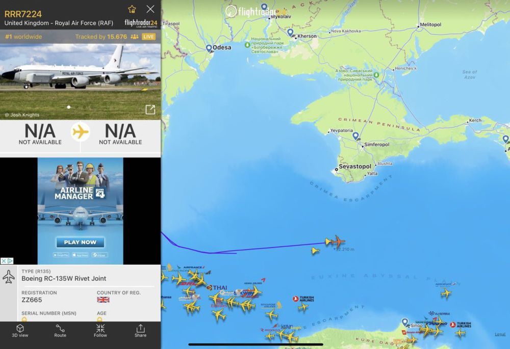 USAF RC-135 tiedustelukone lentää pitkin itärajaa, Britit pyöri ympyrää tauotta Suomenlahden suulla P-8 merivalvontakoneilla ja Kalin, anteeksi Köningsbergin ympärillä näytti eilen tuolta, aika vilkasta, koneita on Italiaa myöden.