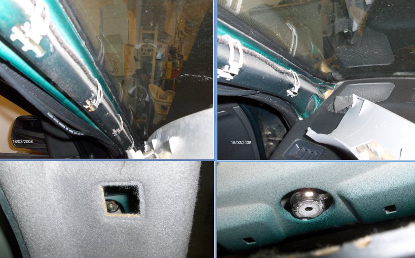 Vaatii sorminäppäryyttä ja sopivia pieniä työkaluja, jotka mahtuvat katon ja verhoilun väliin "sokkona" pyörimään. Pieni räikkä ja 8mm-hylsy pelaa.