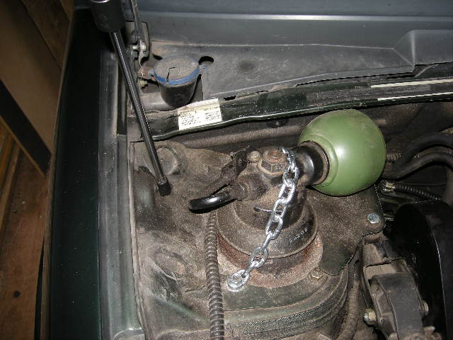 Mun napaani kaiveli tuo jousijalan yläosan pettäminen kunnes tuli energeettinen hetki. Hain Tarjoustalosta kettinkiä ja laitto oli aika helppo. Mutterit piti vaihtaa tavallisiin kun laitoin ketjun lenkin molemmille puolille prikat. Muuten olisi pultin kierre jäänyt pitämään lyhyeltä osalta. Ensin suunnittelin lattaraudasta mutta järkiinnyin kun huomasin että vaimennuskumin vaikutus olisi tuhottu sillä ja tärinät +ääni olisi ehkä lisääntynyt. Ketju on sopivasti hieman löysällä joten se ehkä toimii. Samanlaisen virityksen olen nähnyt patongissa aikaisemminkin eikä vaikuta yhtään hullummalta. Mitähän katsastusäijä tykkää tosta, saa nähdä. Täytyy vaan vitsailla sille että eihän näin vanha auto pysy kasassa ilman kettikiä ja rautalankaa