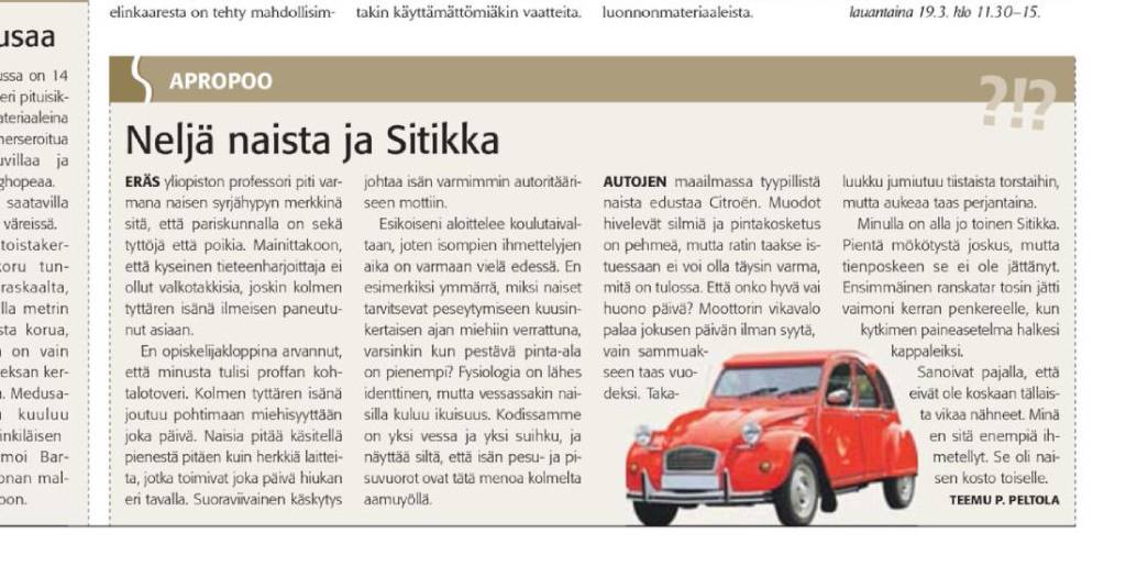Viestin otsikko: Re: Neljä naista ja Sitikka