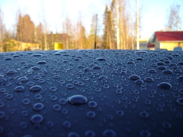 ...tuosta on nyt kuukausi ja edelleen maalipinta hylkii vettä kivasti. Isoin edistys oli saada valkoisesta maalipinnasta kaikki pienet (ruskeat + mustat) pisteet & viivat veke - näitähän on eniten pyöräaukkojen ympärillä.