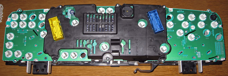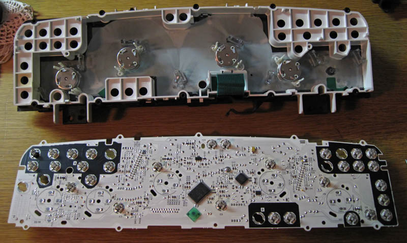 Kontaktipinnat on jo käyty läpi ja ne on juotettu uusiksi jokaisen mittarin alta. Niinkuin Laakeri tuossa jo mainitsi on II koppaisen mittaristo erilainen.